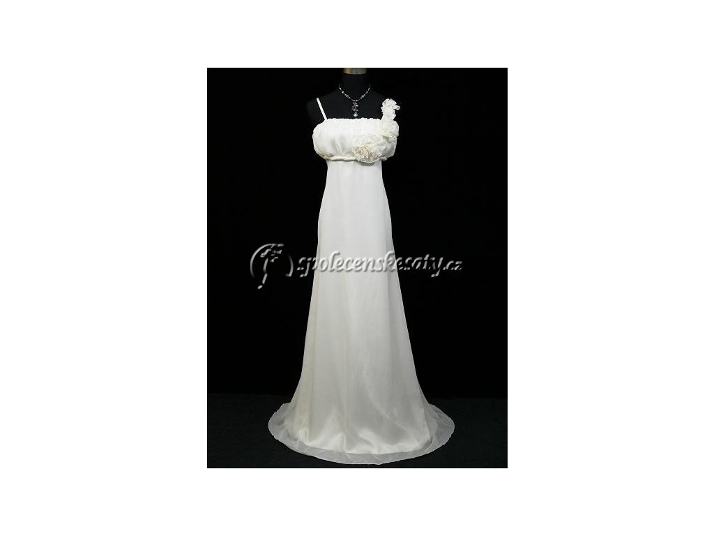 Plánujete svatbu a chcete svatební šaty za lepší cenu? Pak vás snad nemile zaskočí ceny za půjčení šatů. V našem sortimentu najdete svatební šaty, jenž budou jen vaše a hlavně je před vámi nikdo nebude nosit za cenu, jenž je nižší, než bývá cena půjčovného v mnoha salonech. Ctěné nevěsty, máme tu opravdu překrásné svatební šaty za přívětivou cenu. Střih šatů je velice rafinovaný. Módní svatební šaty s úžasnou sukní a ozdobným živůtkem vás promění v královnu a věřte nám, že hezčí nevěstu v okolí jen stěží najdete. Zdobená sukně se venku přenádherně vybarví, v kostele potom zase zazáří a na hostině od vás novomanžel nebude moci odtrhnout pohled. Parametry jsou poměrně flexibilní a tyhle překrásné svatební šaty dokonale sednou i více velikostem. Milé nevěsty, máme tady jednu informaci. Tyto svatební šaty úžasně formují postavu a můžete je tedy využít i jako zeštíhlující svatební šaty. Dokonale vám padnou a zvýrazní to, co má být viděno a naopak schovají případná kilečka navíc. Světlounce béžové, barva šampaň (fotografie zkresluje barvu díky blesku, šaty jsou více do béžova) dlouhé šifónové společenské nebo svatební šaty, svým střihem vhodné i pro těhotné, nevypasované, empírový střih. Ramínka jsou tenká posuvná, jedno je zdobeno květinkami, stejně jako část topu vepředu. Prsní část je módně žebrovaná. Vzadu jsou gumičky a stuha na dotažení v pase, z boku zip. K šatům také dostanete zdarma šál z organzy ve stejné barvě jako jsou šaty, který můžete přehodit přes ramena či podvléknout pod ramínka a bude vám sloužit jako menší bolerko.