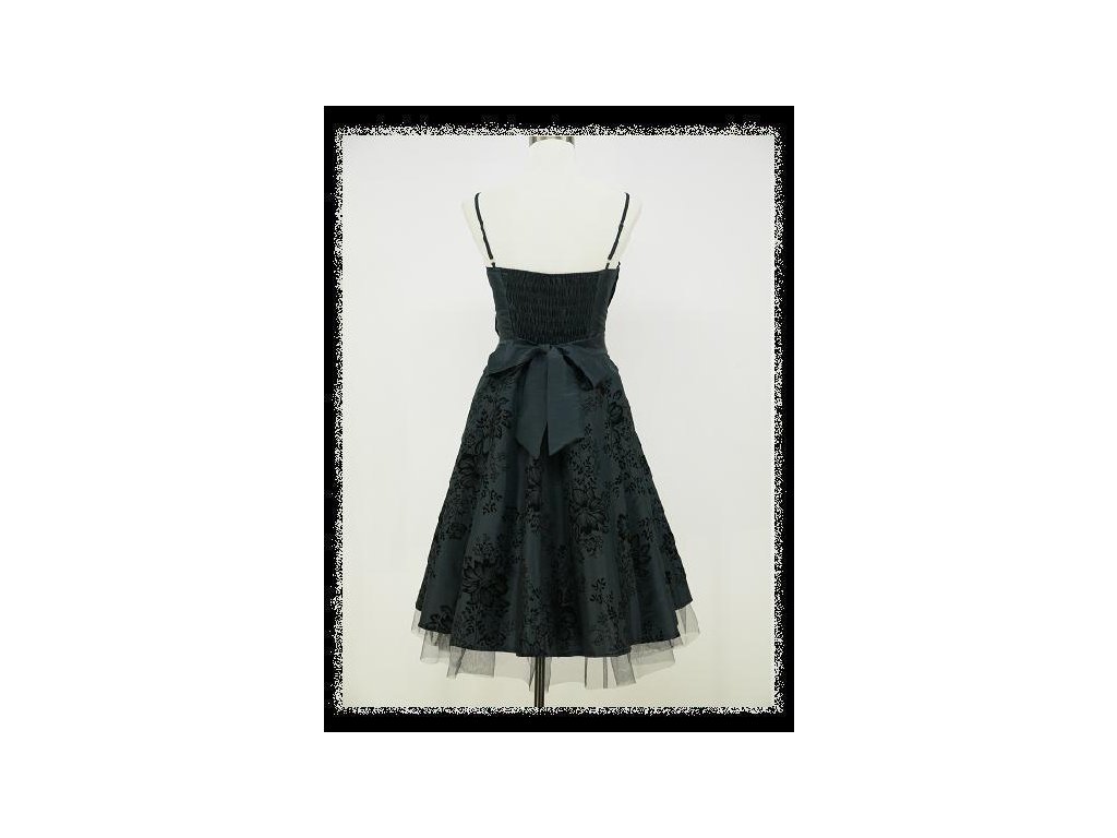 Temně modré, skoro černé, krátké společenské šaty s retro černým plyšovým potiskem, na tenká posuvná ramínka, díky kterým si můžete délku šatů mírně upravit dle své výšky a postavy. Vzadu jsou žabičky, aby se šaty co nejlépe dopasovaly na Váš hrudník, z boku je zip, vzadu stuha na dotažení v pase, možno zavázat na mašli nebo na uzel. Pas je zvýšený, takže maskuje břišní špíčky, vpředu je navíc maskovací mašle. Sukně je dole lemována tylem. Koktejlky mají kolovou sukni a je možno je nosit se spodničkou či bez ní. Na fotografiích máte šaty vyfoceny jak se spodničkou, tak i bez ní, kdy jsou šaty více splávavé, nejsou tak nadýchané. Krátké spodničky pod koktejlky můžete zakoupit také u nás v eshopu. Tyto modré koktejlky v nadměrné velikosti se hodí zejména na ples, do tanečních, na svatbu pro hosta.
